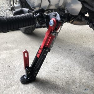 最近ちょっとだけヘマしてサイドスタンドを曲げちゃいました。ネット検索で安い商品がありましたので交換してみました。(アルミシルバー色)→(レッド)に。