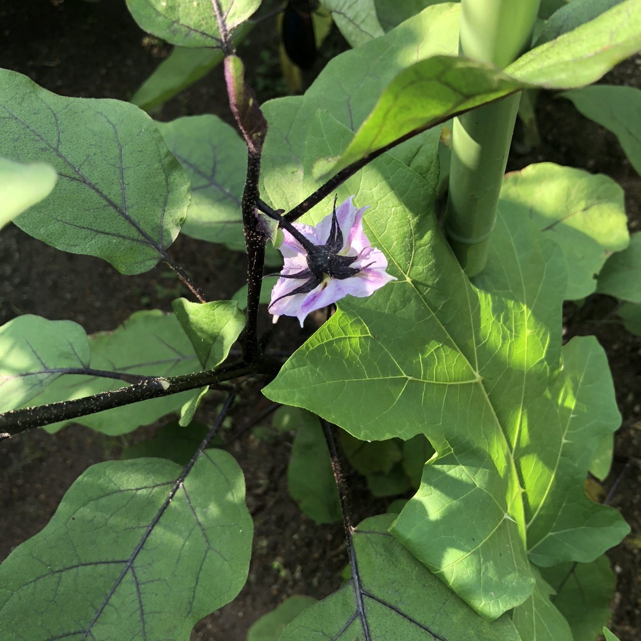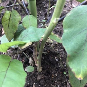 グーグル先生に確認すると、接木した台木用の赤ナスが育ってしまったようで。苗木を買ってきて植えただけですが、丈夫な苗木になるまでに様々な工程があるのに感動です。