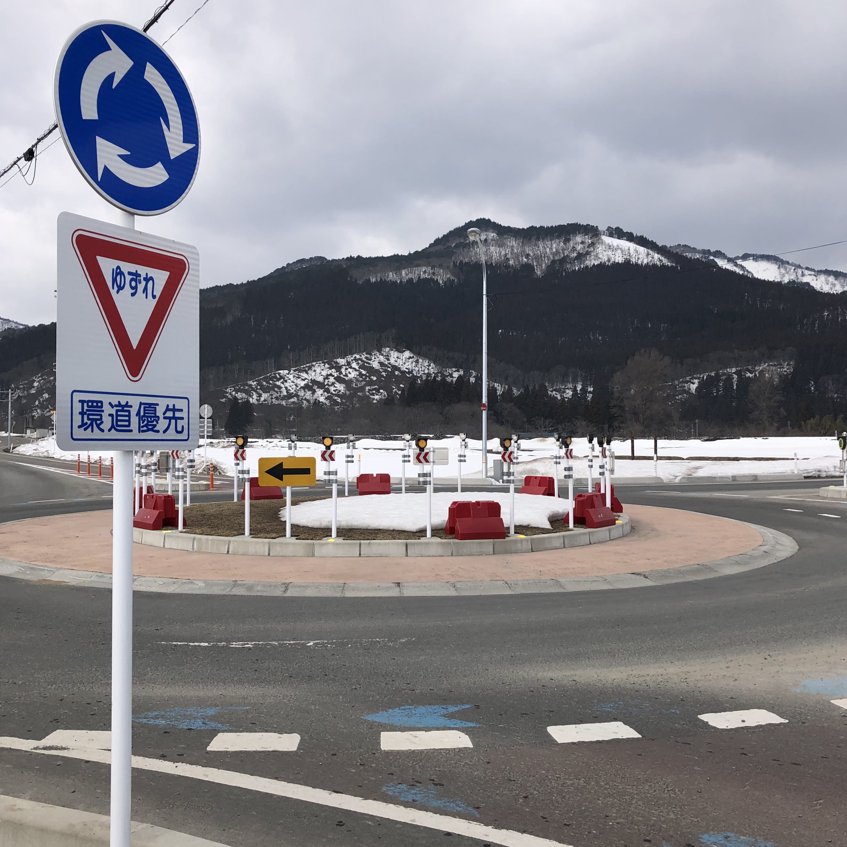 山々にはまだまだ雪積もっていますが、道路は乾燥です。今日は初めてラウンドアバウト交差点を通過してみました。免許更新時の法改定等の説明で聞いてはいましたがようやく現物をみました。