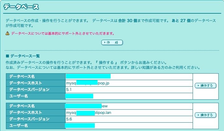 ロリポップでMySQL5.1から5.6にバージョンアップ|5.7対応