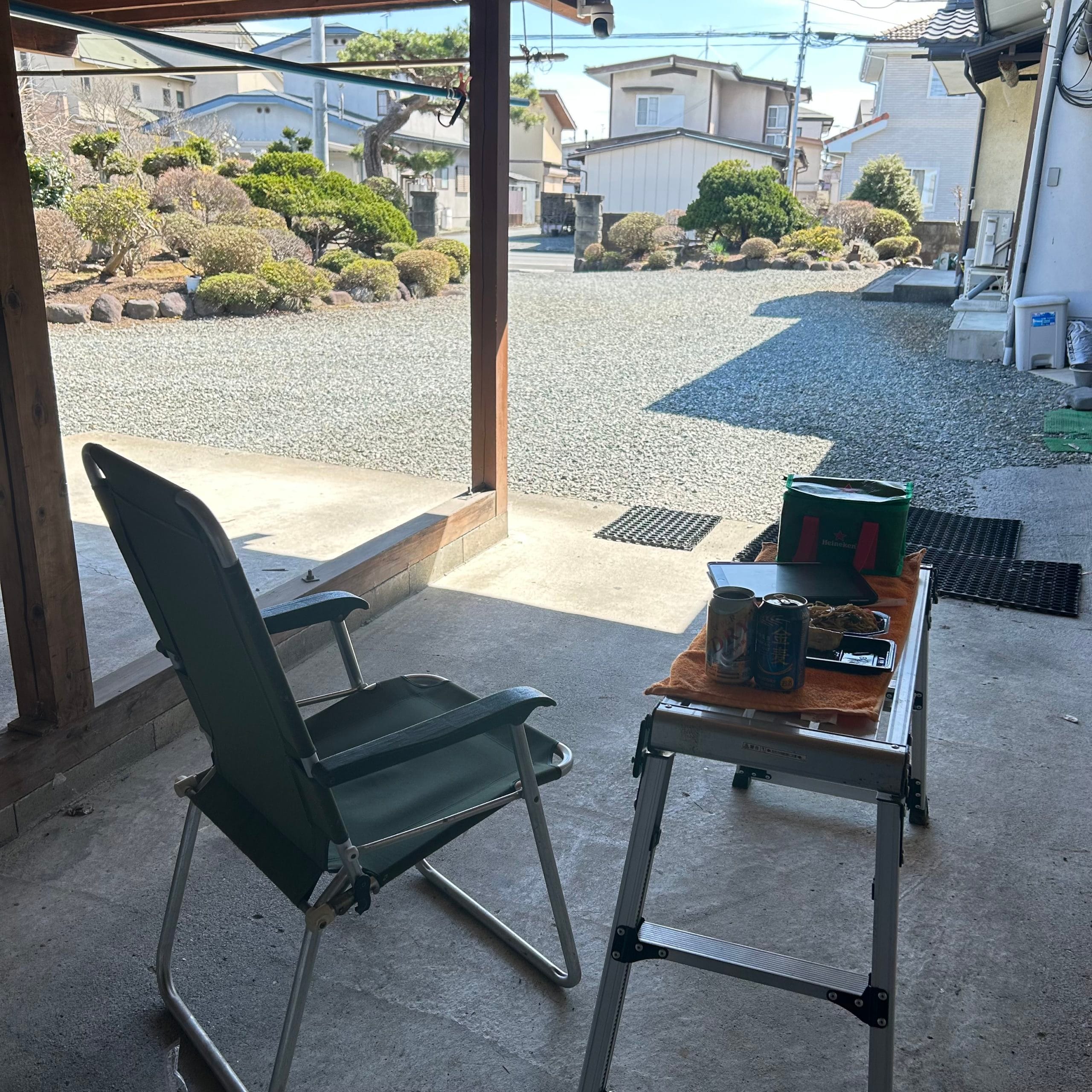 自宅のガレージでJAZZを流しながら、ひとり宴会。