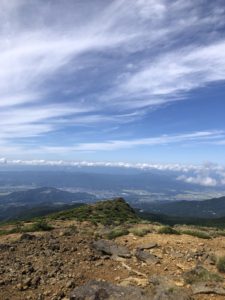 山形県側は晴れ渡っています。神社のお参りを済ませてから、山頂からの眺めを頂きます。