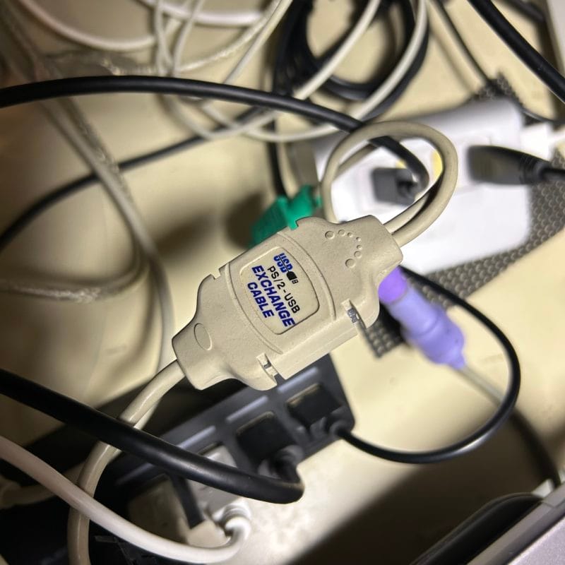 そのままでは接続できないので、「いつかは使うかも」と捨てられずに取ってあった USB–PS/2変換器を引っ張り出します。