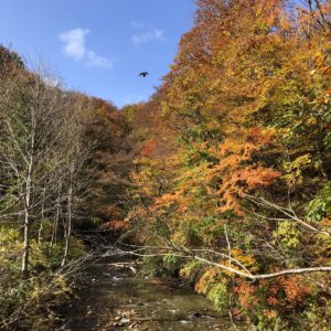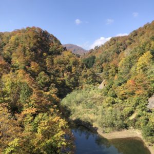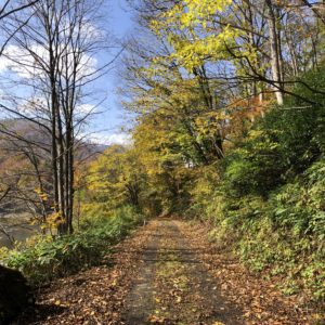 ここまで長井ダム、木地山ダムを経由して最後は完全な林道、砂利、泥有りのオフロード。しかしながらこのシーズン紅葉を十分に楽しめました。