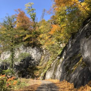 この先が登山口、今日は戻ります。途中ぬかるみで2度転けそうになりましたが大丈夫、枯葉、小枝がめちゃくちゃ多くて飛ばせません、ガードレールもほぼ無いのでゆっくりと紅葉見ながら、120km程の気持ちの良いツーリング日和でした。