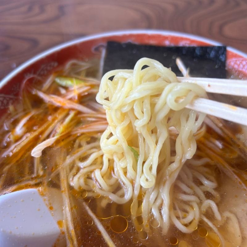 ラーメンは、澄んだスープに千切りネギ、そしてラー油。