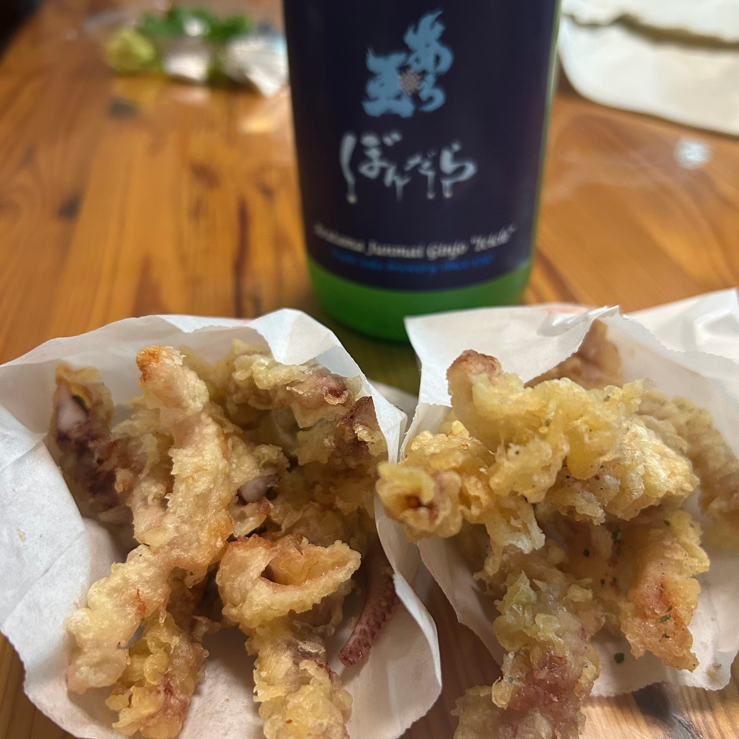 四合瓶のお酒とげそ天で、まったりとされているお客さん。