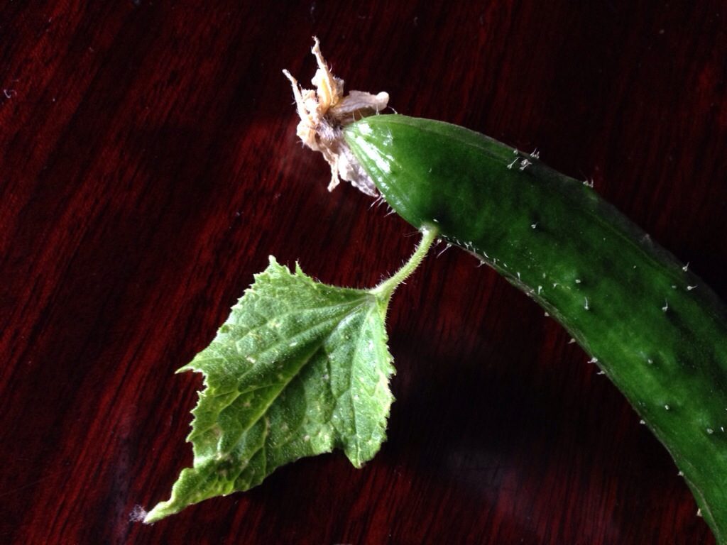 変わったキュウリを収穫