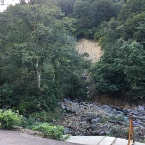 脇の河川は、山肌が崩れていたり、流木があったりと、大雨の影響が把握できます。