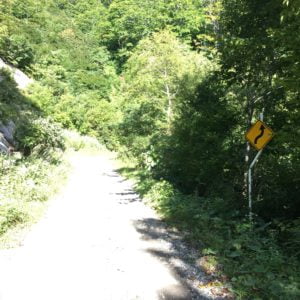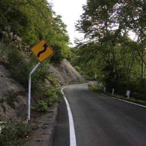 ほぼ林道状態ですので、カーブ危険は分かりますが、標識まで必要?常にカーブですが!