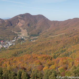 蔵王温泉街を見下ろすと山肌は見頃で、ロープウェイからの景観は最高のようです、